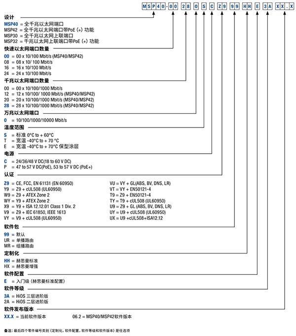 赫思曼Hirschmann MSP交换机型号参考