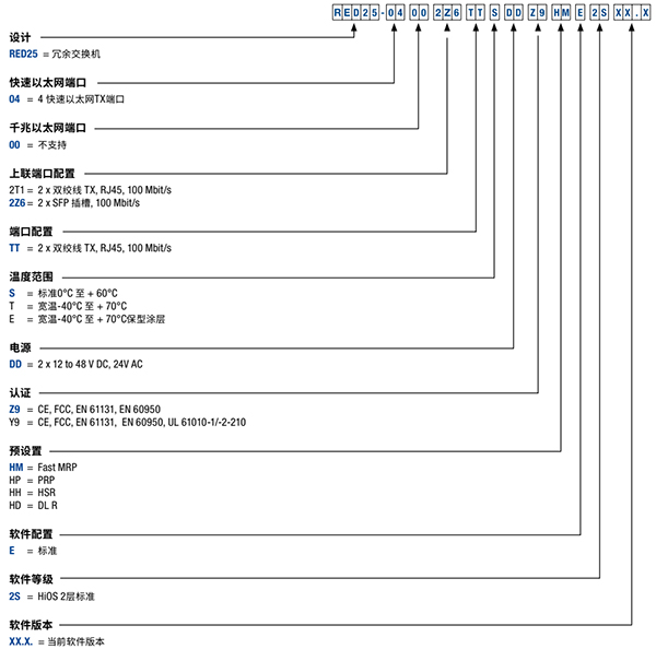 赫思曼Hirschmann RED交换机型号参考
